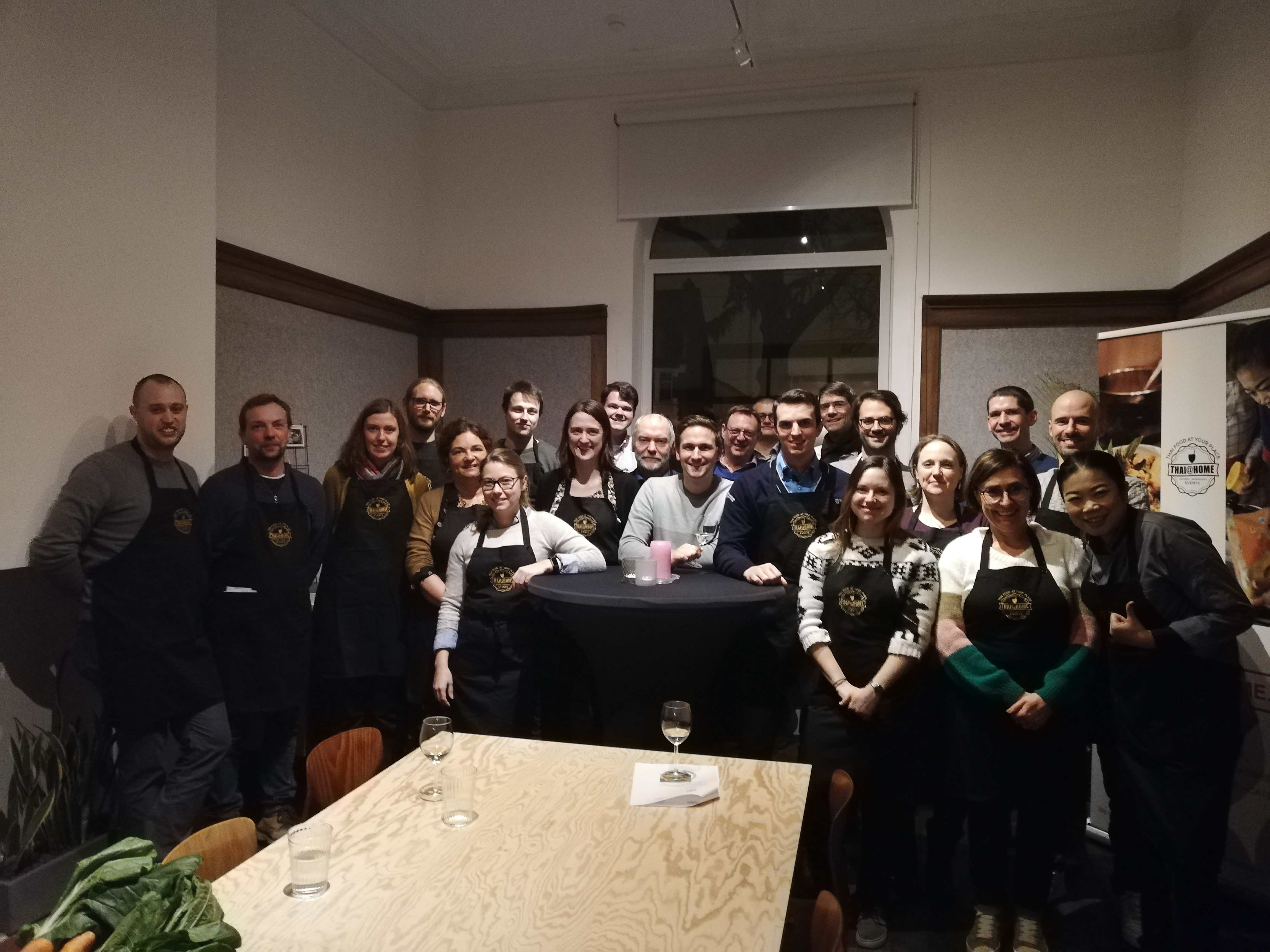Groepsfoto van Thaise kookles in Melle voor bedrijfsevent Klaar om te koken! Foto van groep mensen tijdens bedrijfsevent