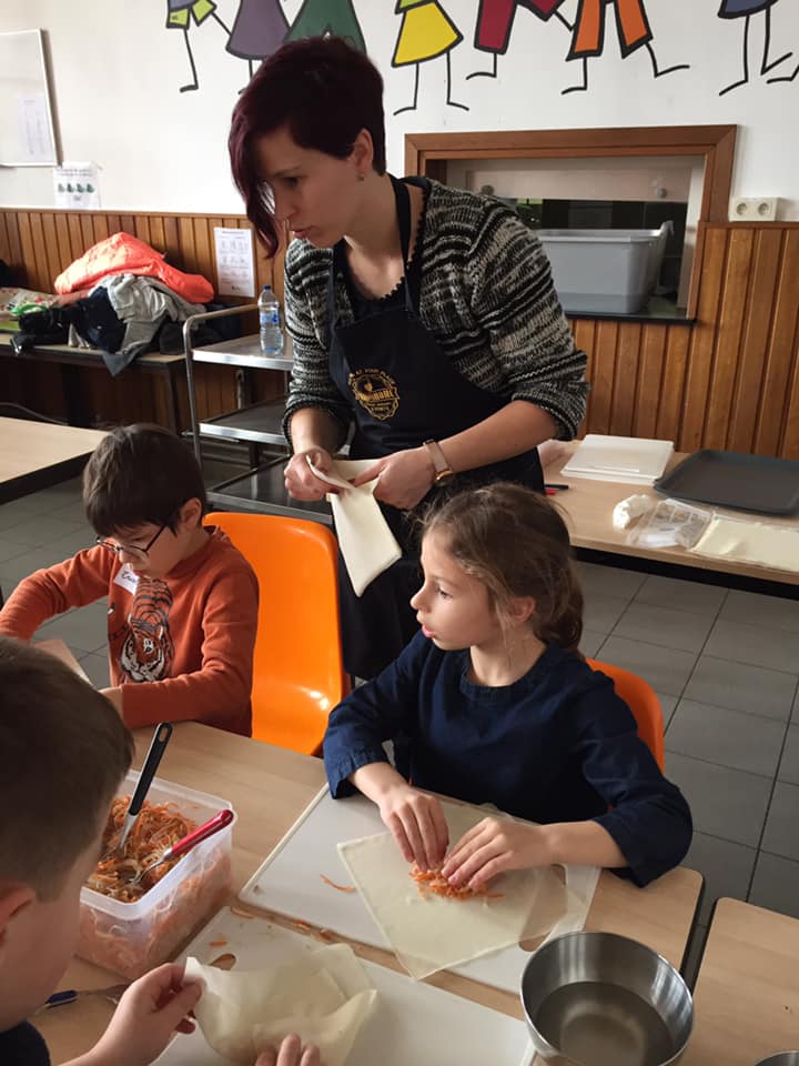 De mama’s hebben meegeholpen op^de Thaise kookles