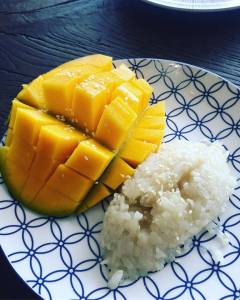 Sticky rice met mango bij Thai@Home Authentiek dessert van plakrijst met kokosmelk en mango Foto van Thais dessert