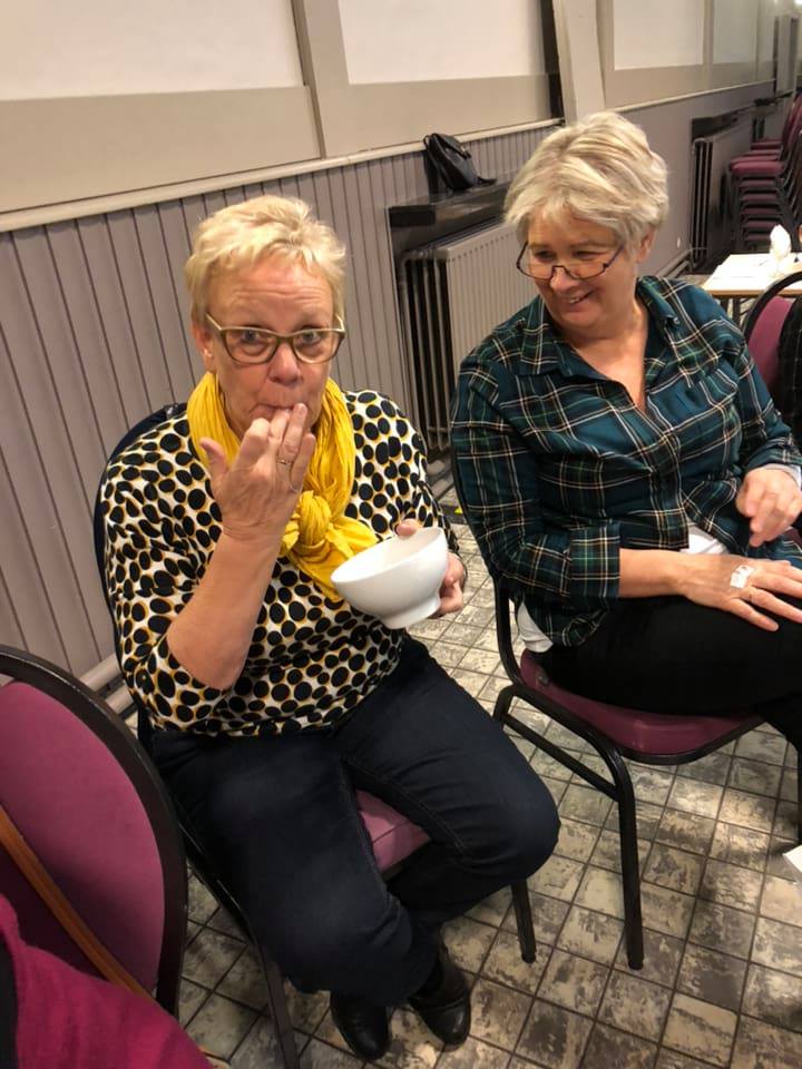 Foto van dame die saus proeft