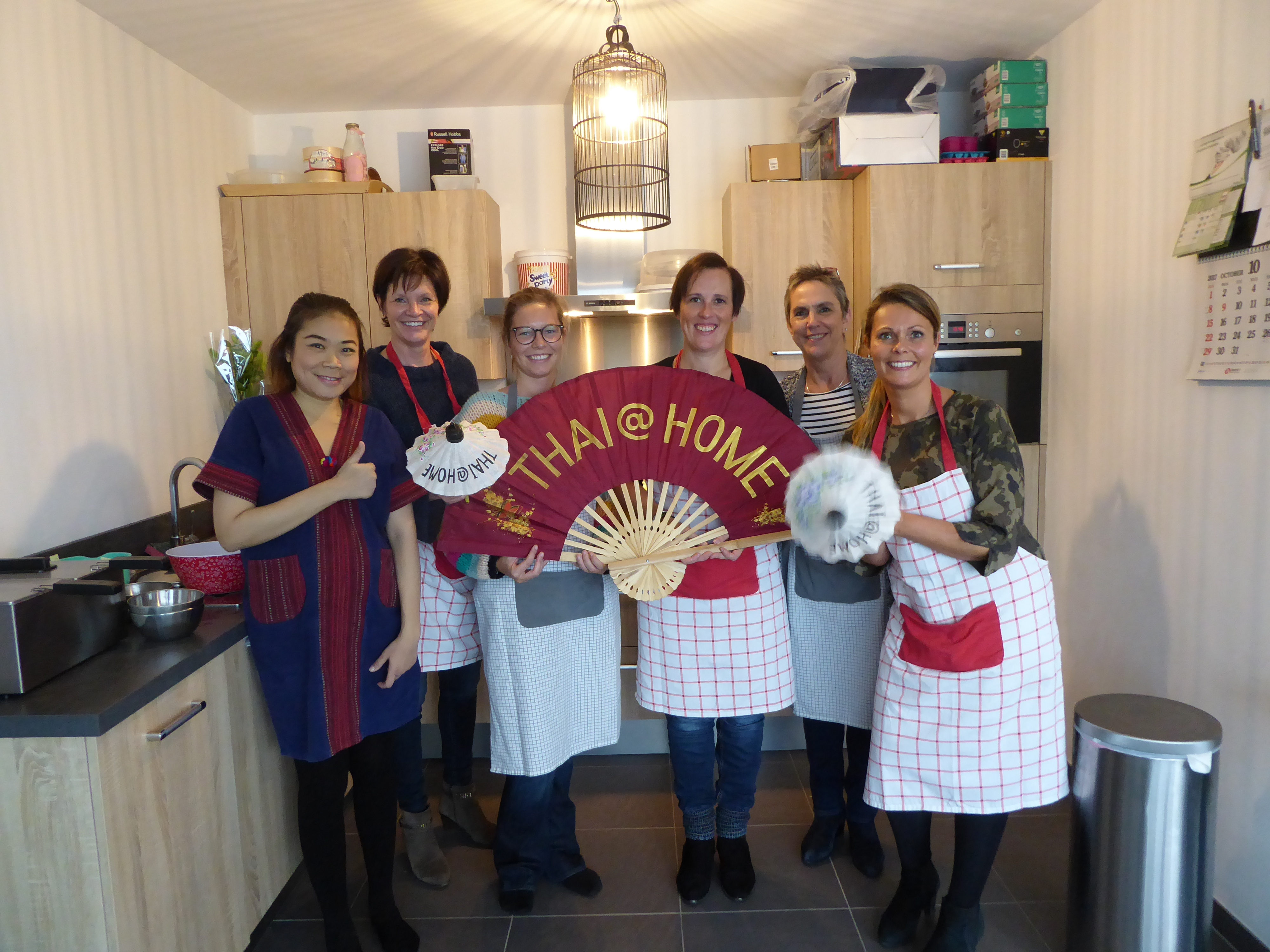Enthousiaste deelnemers aan de Thaise kooklessen