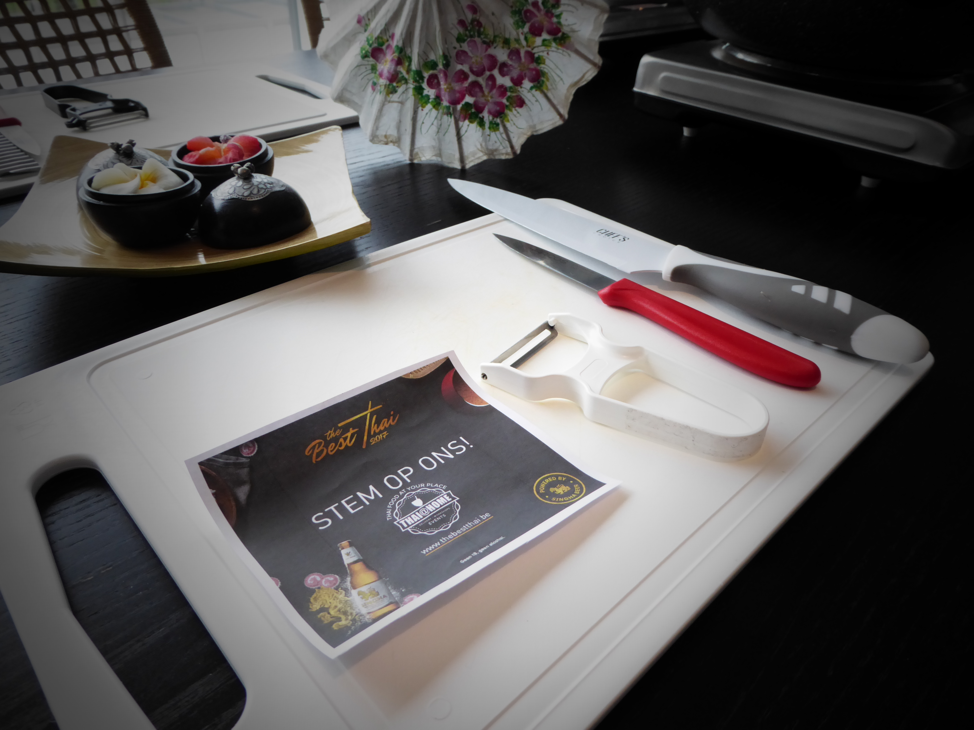 Tafel set-up net voor de Thaise kookworkshop Oost-Vlaanderen